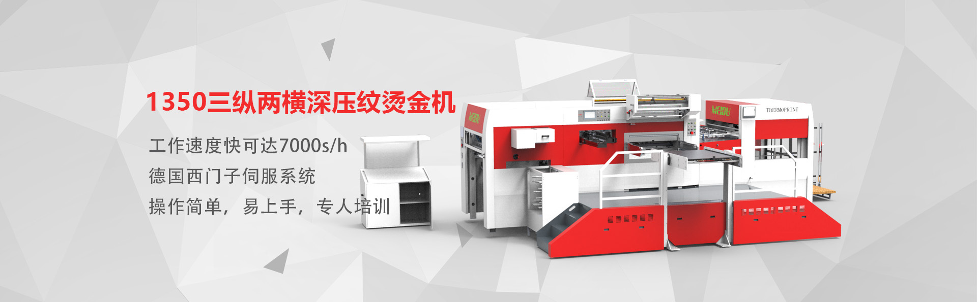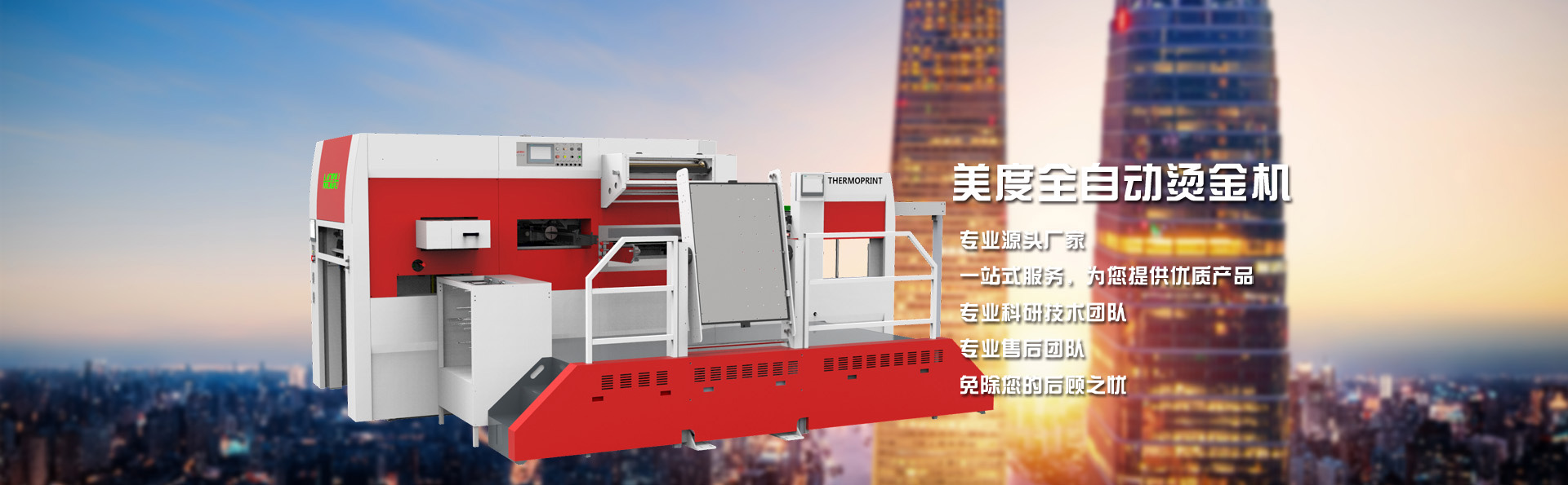 山東美度印刷設備有限公司是一家從事機械研究和制造的企業(yè),主要產(chǎn)品包括全自動平壓平三縱燙金機、全自動平壓平三縱兩橫燙金機、全自動平壓平深壓紋模切機、全自動平壓平深壓紋燙金機、全自動平壓平模切機等系列產(chǎn)品。經(jīng)過多年的發(fā)展,公司現(xiàn)已擁有多名的工業(yè)研發(fā)設計人員、經(jīng)驗豐富的生產(chǎn)安裝人員及嚴謹認真的質(zhì)量檢驗人員,從外購件檢驗、零部件加工、整機裝配、出廠檢驗等各個流程均有嚴格質(zhì)量保證,從而保障了所生產(chǎn)設備的品質(zhì)。